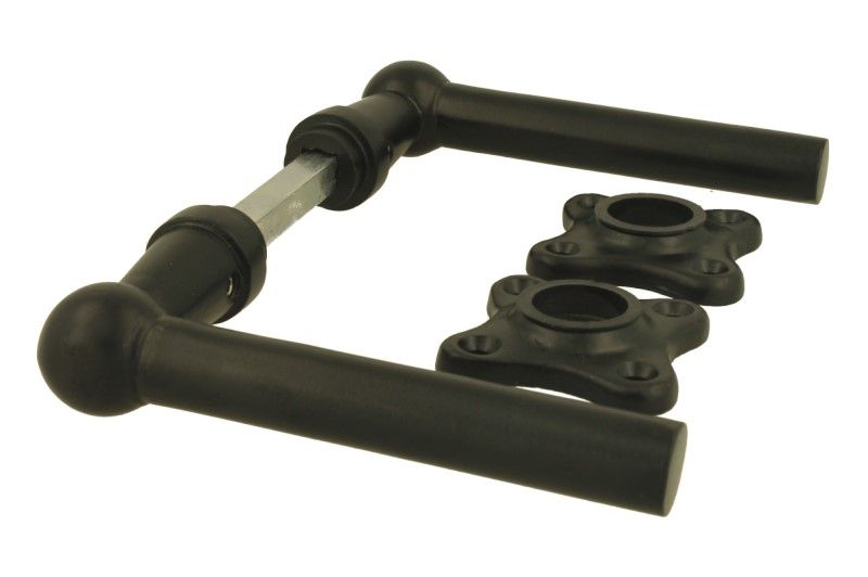 Béquilles de porte noir "chemin de fer" sur rosaces trèfle