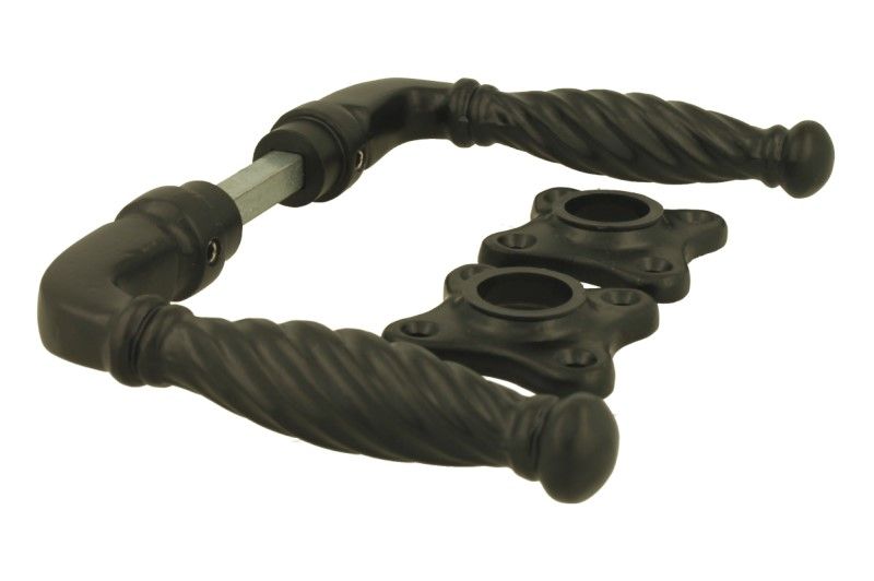 Béquilles de porte noir poignée torsadée sur rosaces trèfle