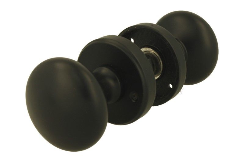 Bouton de porte double rond laiton noir sur rosaces rondes