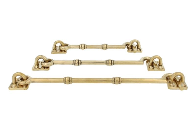 Crochet de contrevent en laiton poli modèle antique 150 mm