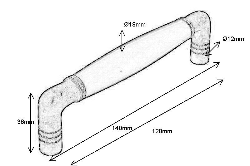 Poignée de cuisine laiton poli. Entraxe 128 mm