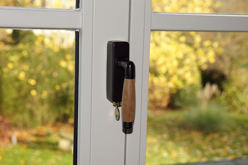 Poignée de fenêtre à clé noire en fonte bois teck