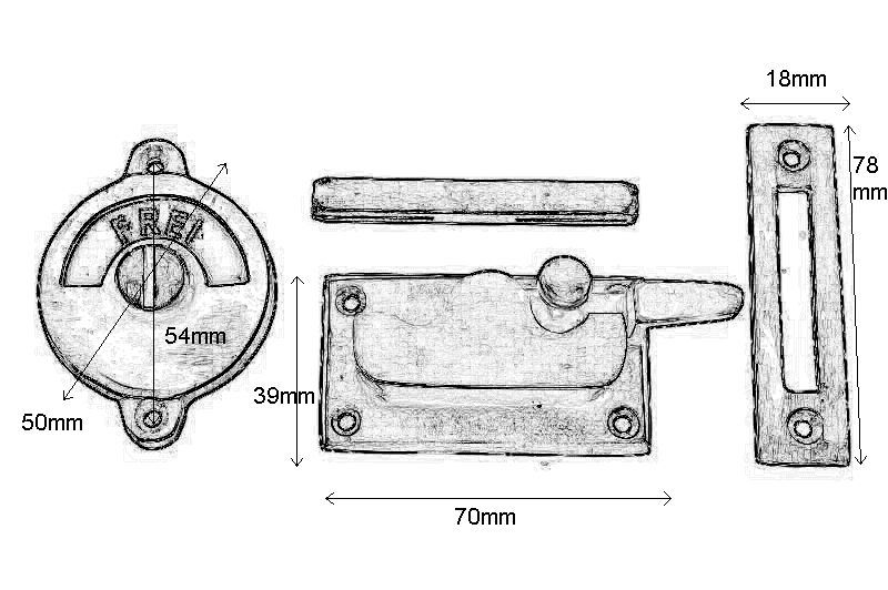 Verrou de porte de WC Frei/Besetzt en laiton poli 70x39 mm